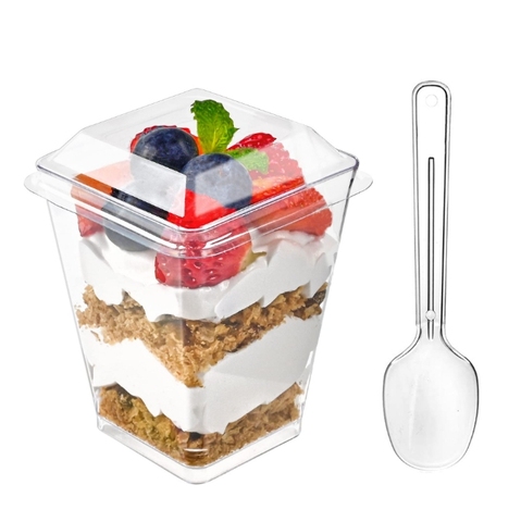 Ptpack Wegwerp Plastic Ps Dessertbeker Ijs Mousse Mini Vierkante Dessertbekers Met Deksel